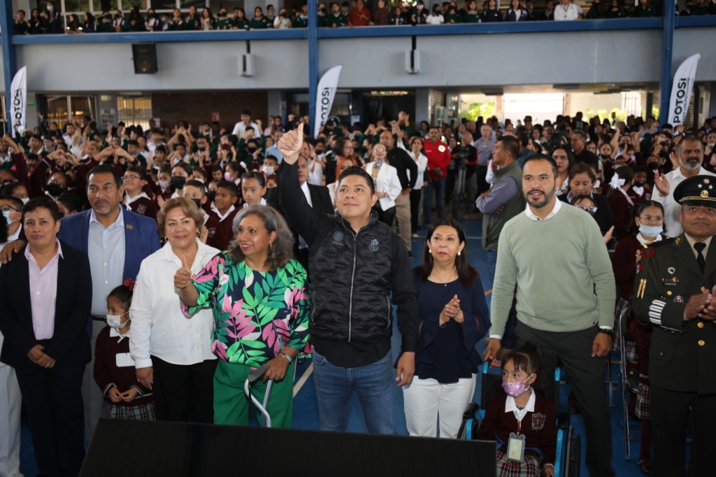 La educación en San Luis Potosí continuará recibiendo el apoyo total del Gobierno del Estado, mediante la dotación de infraestructura y los programas sociales a favor de las niñas, niños y adolescentes, para que continúen siendo el motor del futuro, afirmó el Gobernador de San Luis Potosí, Ricardo Gallardo Cardona, durante el arranque del ciclo escolar 2023-2024 en la Escuela Secundaria General “Graciano Sánchez Romo” en Soledad de Graciano Sánchez.