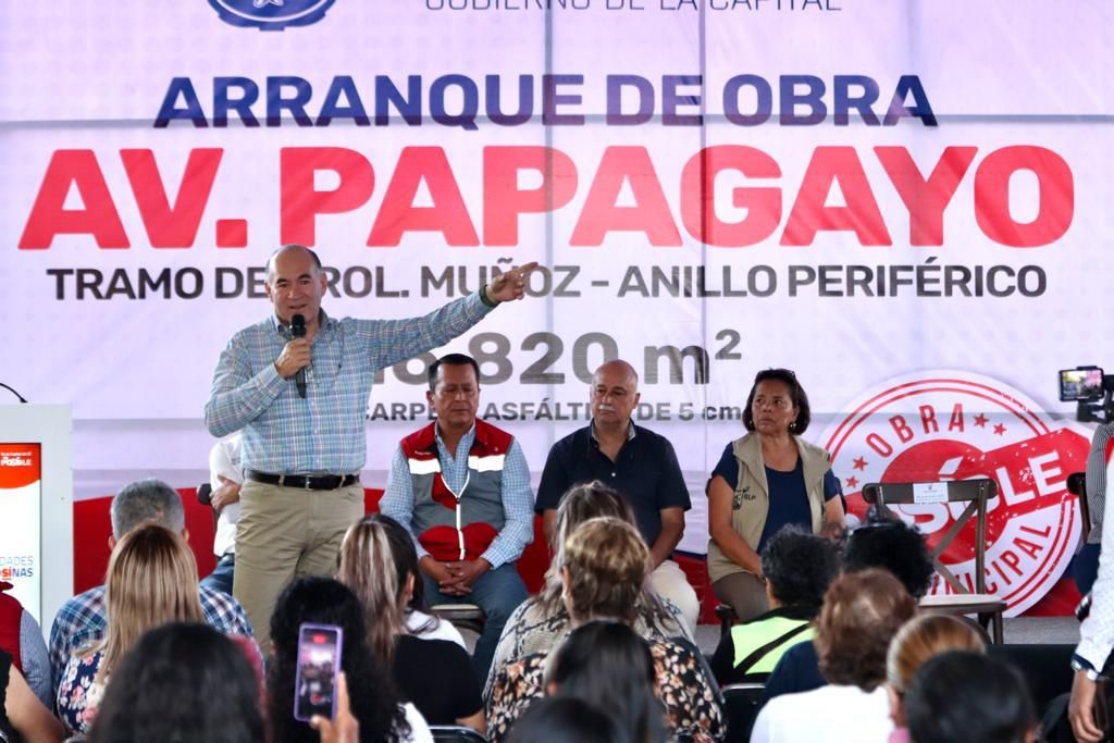 El Presidente Municipal Enrique Galindo Ceballos dio banderazo de arranque a la rehabilitación integral de la emblemática calle Papagayo, una arteria vital para la movilidad en la zona norte de la Capital, que pese a su relevancia durante años estuvo en el abandono: “Papagayo es uno de los retos más importantes para el Gobierno de la Capital, nos lo pedían la Juntas de Participación Ciudadana, en redes sociales, los vecinos, los transportistas, y hoy comenzamos con esta rehabilitación muy necesaria”.