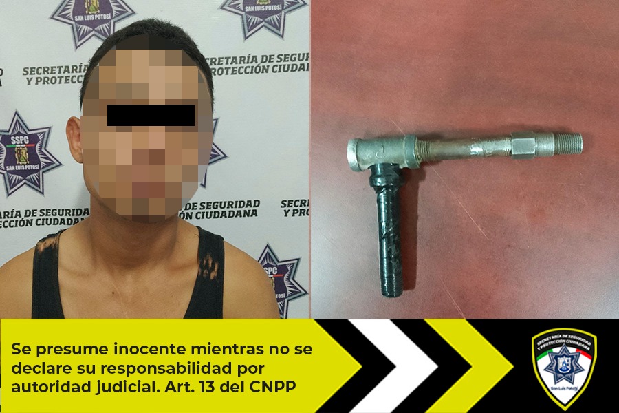 Los agentes lograron darle alcance, en tanto una de las oficiales recogió el objeto arrojado, el cual era un tubo metálico en forma cilíndrica en color gris y empuñadura forrada en cinta color negro, confirmando que se trataba de un arma de fabricación casera de 15 centímetros de largo, elaborada para la detonación de cartuchos de arma de fuego, conocida como “cachimba”.