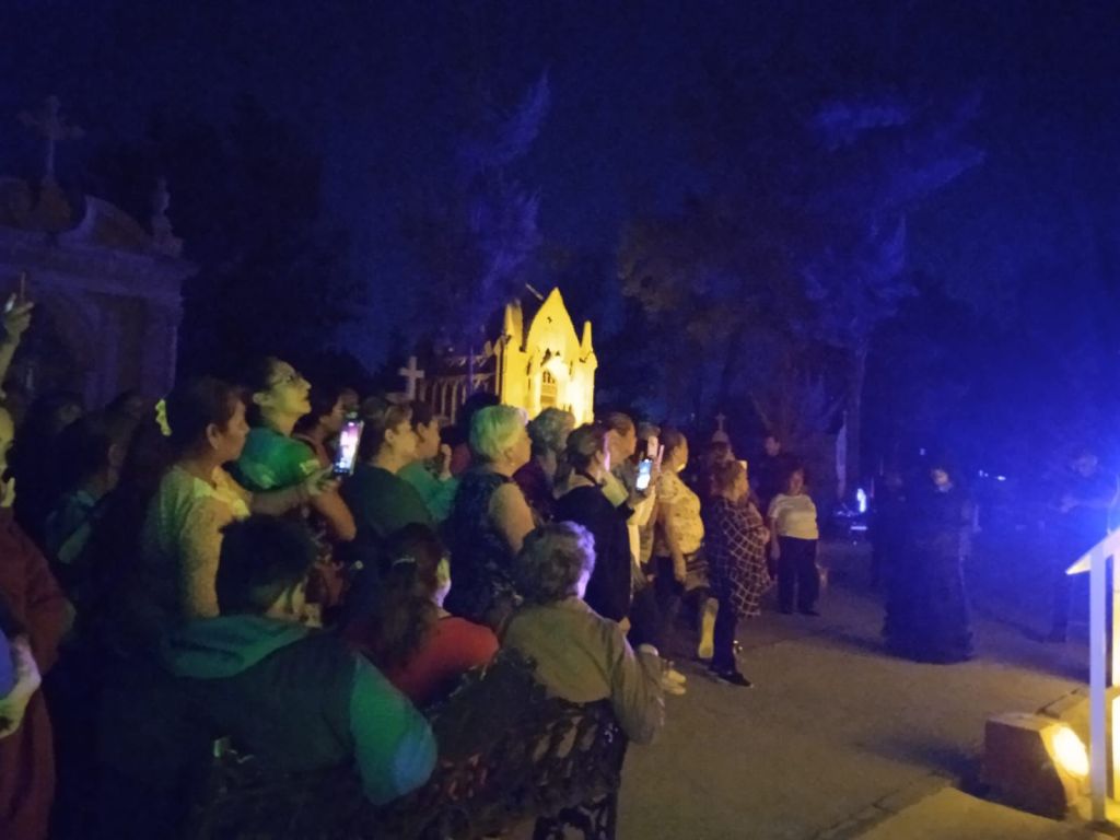 Los asistentes se mostraron gratamente sorprendidos por el recorrido escénico, lleno de arte funerario, iluminación, música y personajes de leyenda que aparecen como el Gallo Maldonado, la Dama Enlutada, Juan de Jarro, la Parca y otros más.