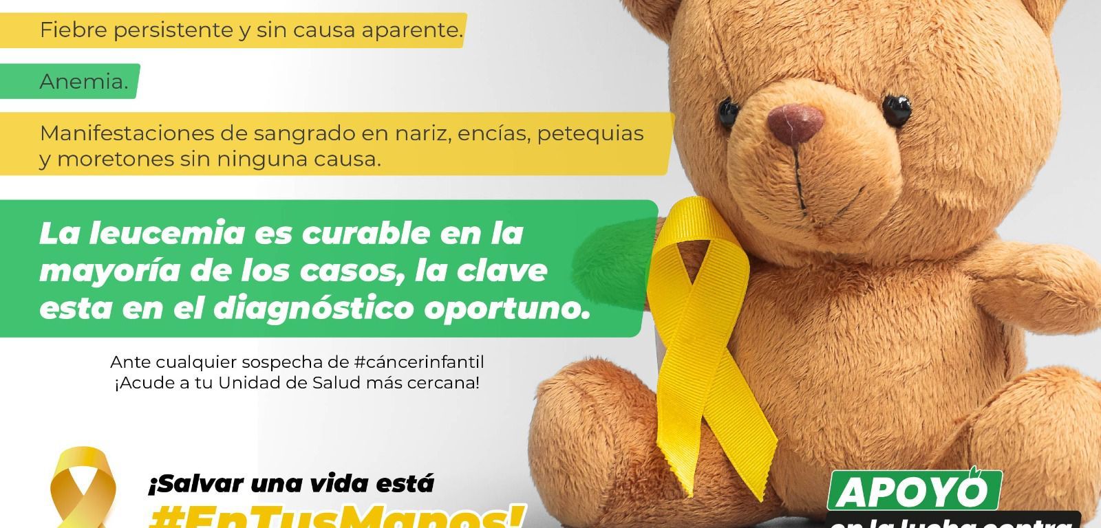 Intensifica Servicios de Salud actividades de concientización sobre el cáncer infantil, bajo el lema “Salvar una vida, está en tus manos”.