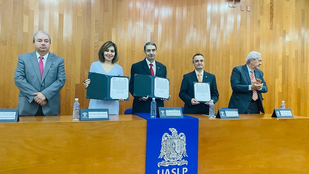 La Universidad Autónoma de San Luis Potosí (UASLP), a través de la Facultad de Derecho “Abogado Ponciano Arriaga Leija”, llevó a cabo firma de convenio marco de colaboración con el Colegio Nacional del Notariado Mexicano y el Colegio de Notarios de San Luis Potosí.