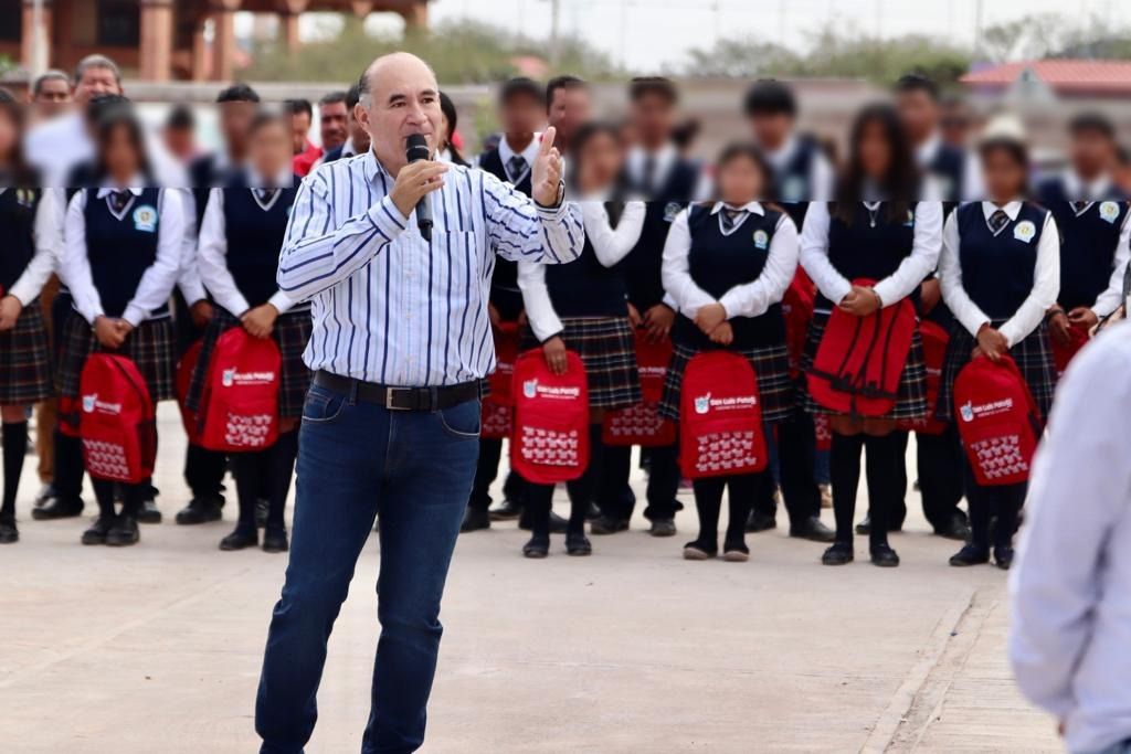 Estas entregas las hizo hoy el Alcalde Enrique Galindo Ceballos, quien, como parte del compromiso con la superación educativa del municipio, ofreció llevar a esta escuela al sistema municipal, y colocarla en igual nivel que las incorporadas.