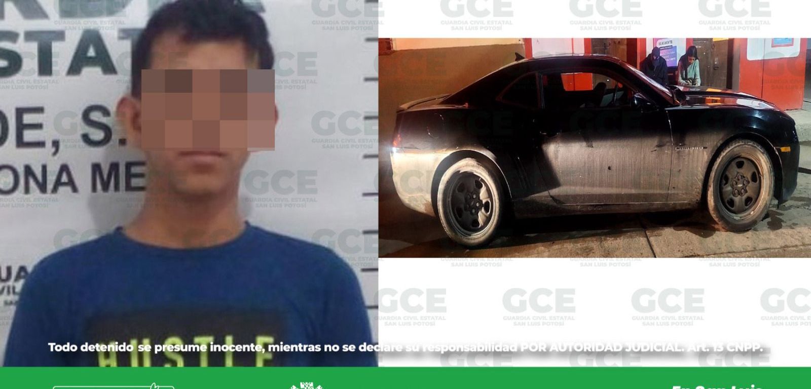 El presunto se ubicó en la zona centro de Ciudad Fernández, agentes de la GCE visualizaron que el conductor de un automotor línea Camaro, conducía de forma irregular, por ello le indicaron que se detuviera.