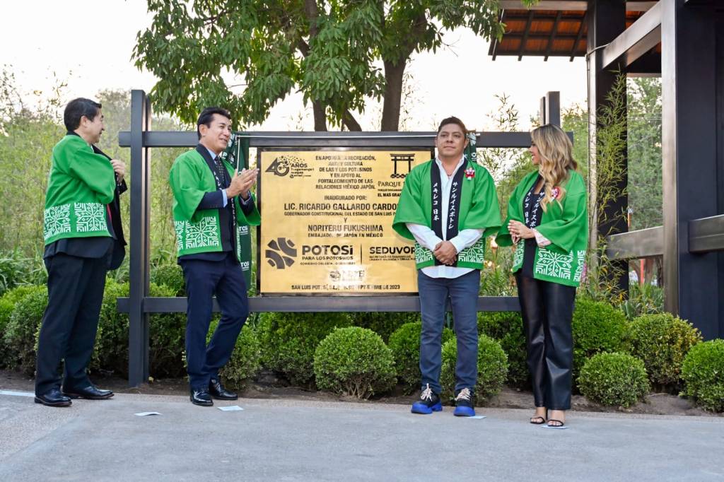 En una emotiva ceremonia, el Jefe del Ejecutivo Estatal, hizo el corte inaugural y develó junto con el Embajador de Japón, Noriteru Fukushima, la placa que conmemorará este importante día para las y los potosinos, ya que se trata de un espacio destinado al sano esparcimiento y realización de actividades culturales para niñas, niños, jóvenes, adultos y personas de la tercera edad, a través de una temática oriental con el apoyo de la Asociación Nikkei en San Luis Potosí.