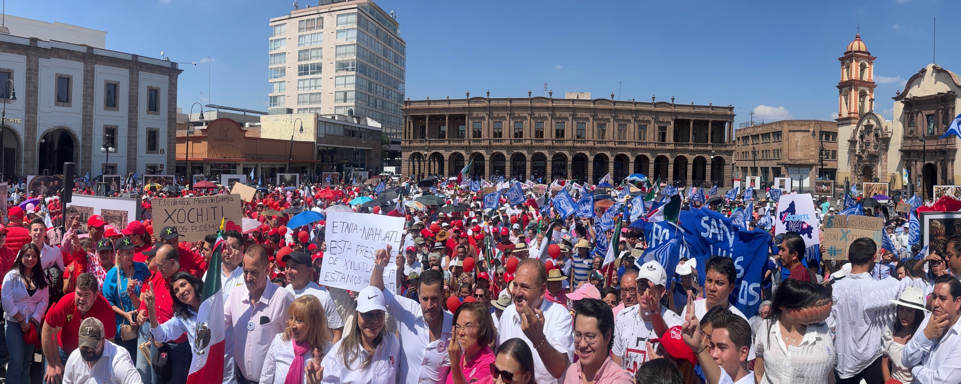 Por su parte, la dirigente del PRI, Sara Rocha Medina dijo que en la Plaza de Fundadores se reunieron los que queremos defender la democracia, la justicia social, las instituciones, “los que estamos aquí nos une un anhelo, recuperar México para nosotros y para nuestras familias».