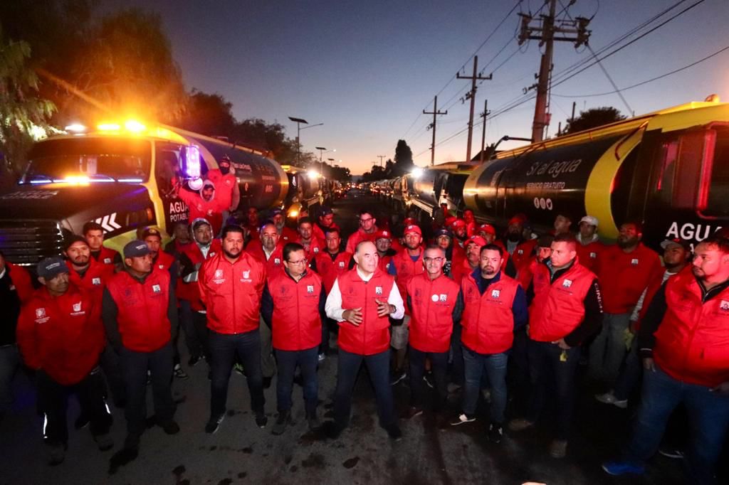 La madrugada de este martes, el Presidente Municipal supervisó el inicio de las labores de más de 70 conductores de pipas de Interapas y el Gobierno de la Capital