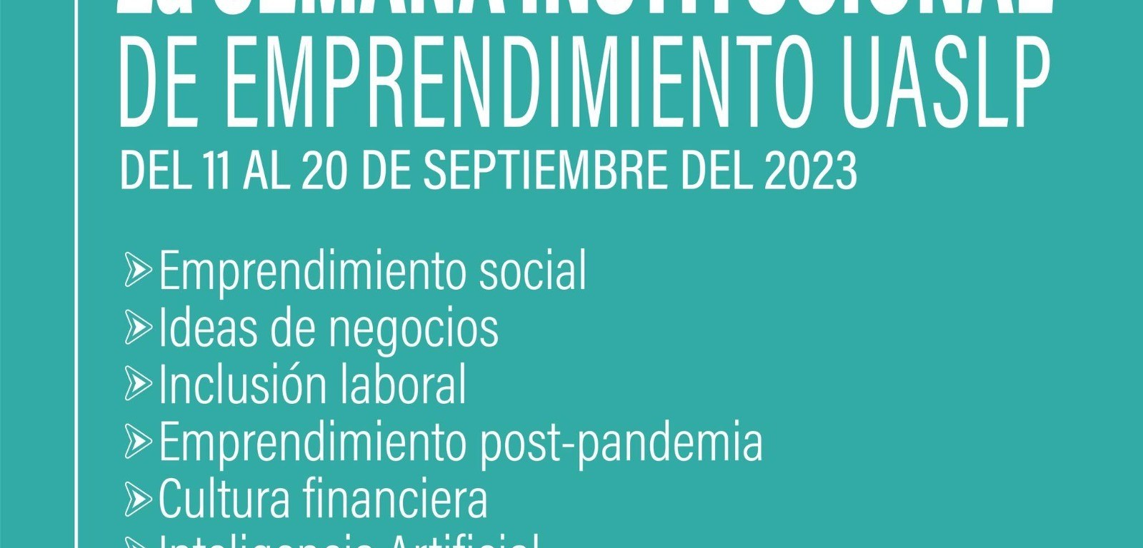 Emprendimiento social, ideas de negocios, inclusión laboral, emprendimiento post-pandemia, cultura financiera, e inteligencia artificial, son algunos de los tópicos que comprenderá la 2ª Semana Institucional de Emprendimiento UASLP, con presencia en los campus universitarios de San Luis Potosí capital, Matehuala, Rioverde, Ciudad Valles, Tamazunchale, y Salinas.