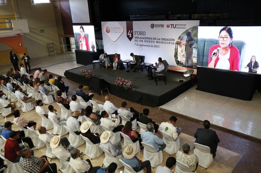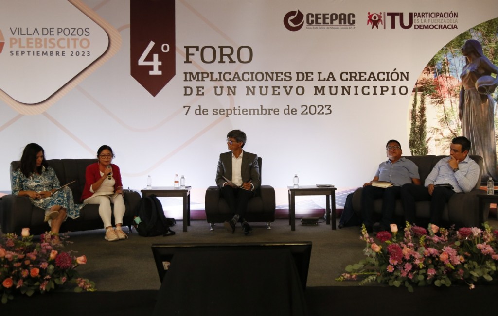 El Consejo Estatal Electoral y de Participación Ciudadana (CEEPAC) celebró el cuarto foro titulado «Implicaciones de la creación de un nuevo municipio». El evento tuvo lugar en el Centro de Convenciones de la delegación de Villa de Pozos, con la participación de panelistas con experiencia en el tema y con gran afluencia de personas habitantes de la Delegación.