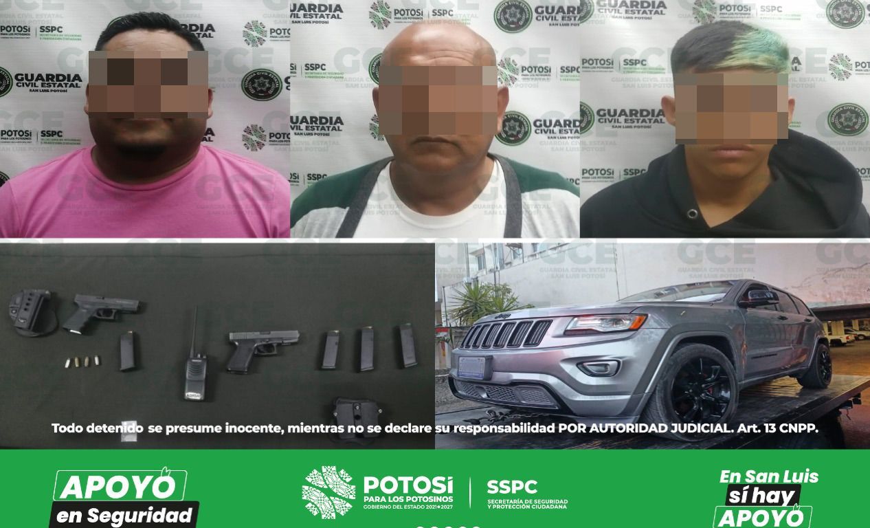 Un dispositivo de seguridad efectuado por policías de la Guardia Civil Estatal (GCE) de la División Caminos, derivó en la detención de tres presuntos a quienes se les aseguró armamento y municiones. Tras no poder acreditar el permiso para la posesión de lo anterior, se procedió a su remisión ante las autoridades federales.