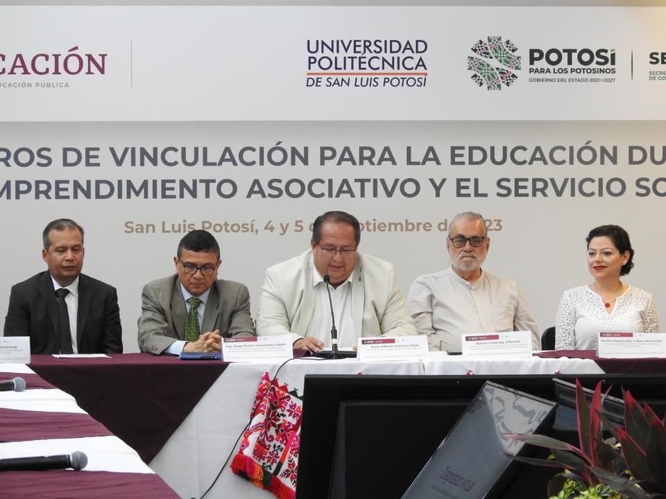 En apoyo a la educación superior de las y los jóvenes, la Universidad Politécnica de San Luis Potosí fue sede del Tercer Foro de Vinculación para la educación dual, el emprendimiento asociativo y el servicio social, encabezado por la Subsecretaría de Educación Superior de la Secretaría de Educación Pública (SEP), a fin de generar espacios de diálogo para la construcción de una agenda con base en los avances y retos en la materia, fortaleciendo la economía social.