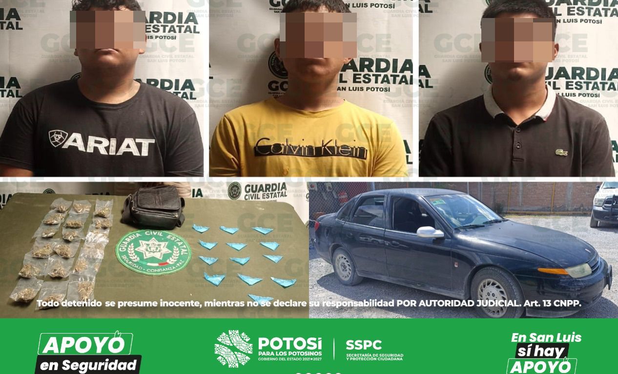 Derivado de operativos implementados por elementos de la Guardia Civil Estatal en el combate frontal contra la delincuencia organizada y el narcomenudeo, se llevó a cabo la detención de Jonathan “N” de 22 años, Ramón “N” de 19 años y Óscar “N” de 24 años en la zona centro del municipio de Cedral.