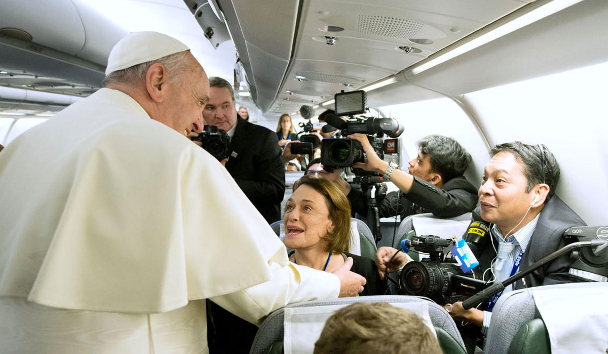 El lunes 4 de septiembre, tras cinco intensos días de trabajo, los 66 periodistas que habían seguido a Francisco durante toda su estancia en Ulán Bator subieron al avión y ocuparon sus asientos, como de costumbre, en las últimas filas del A330. Les entregaron sus famosos «regalos».