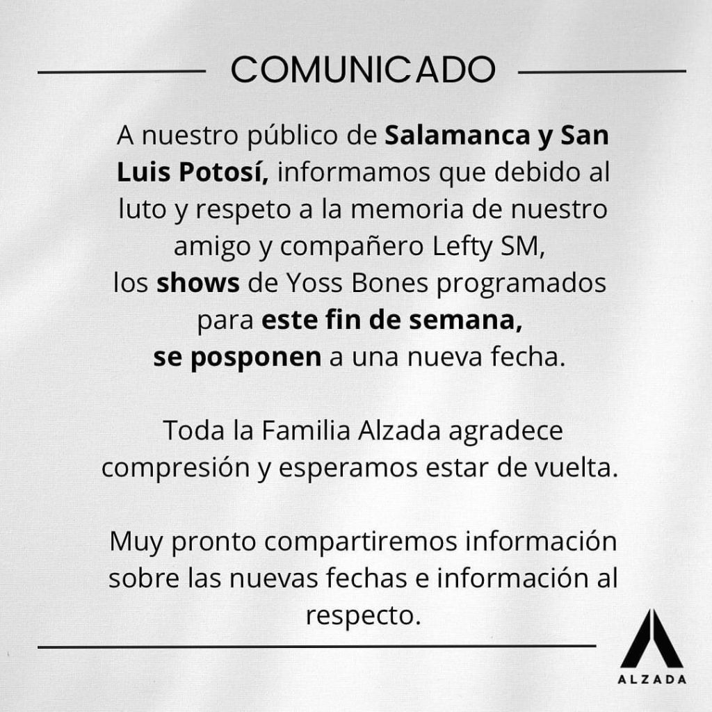 Finalmente, enfatizó que se trabaja estrechamente con Yoss Bones y su equipo para reprogramar el concierto en una fecha que sea apropiada para todas y todos y destacó que pronto se anunciará la nueva fecha para que todas y todos puedan unirse para disfrutar de la música de Yoss Bones en un ambiente de celebración y amor por el Hip-Hop.