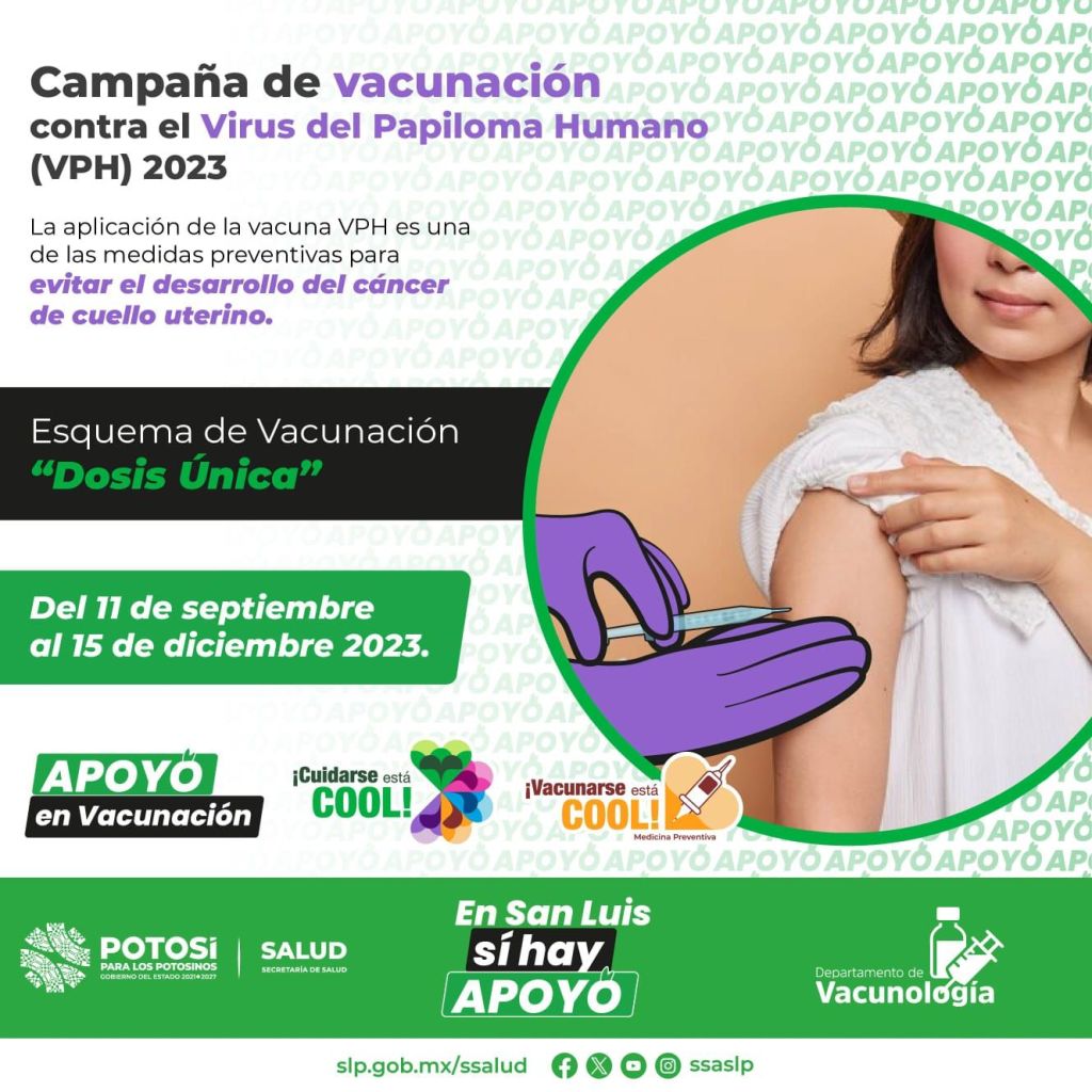 El Gobierno del Estado en apoyo a la prevención de enfermedades como el cáncer de cuello uterino, a través de los Servicios de Salud iniciará del 11 de septiembre en Centros de Salud, escuelas y secundarias en todo el Estado, la jornada de vacunación contra el Virus del Papiloma Humano (VPH), informó la jefa del Departamento de Vacunología de los Servicios de Salud en el Estado, Esmeralda Vanegas Santana.