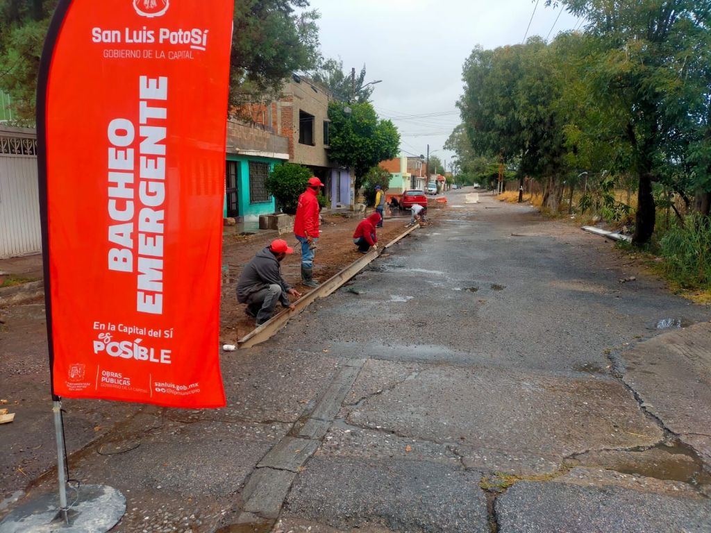 También con material de concreto se atendieron las calles de Valle Dorado y Valle del Sur, en la colonia Rural Atlas; Rey Arturo, esquina Nefertiti, en la colonia Los Reyes; Avenida Mezquital, en el tramo de Galaxia a Ponciano Arriaga, colonia Mezquital; Fuente del Amor en Balcones Del Valle; Lateral Salvador Nava, de 5 de Mayo a Xicoténcatl, en el Barrio de San Juan De Guadalupe; y Prolongación Ponciano Arriaga, esquina San Pedro, colonia Juan Pablo.