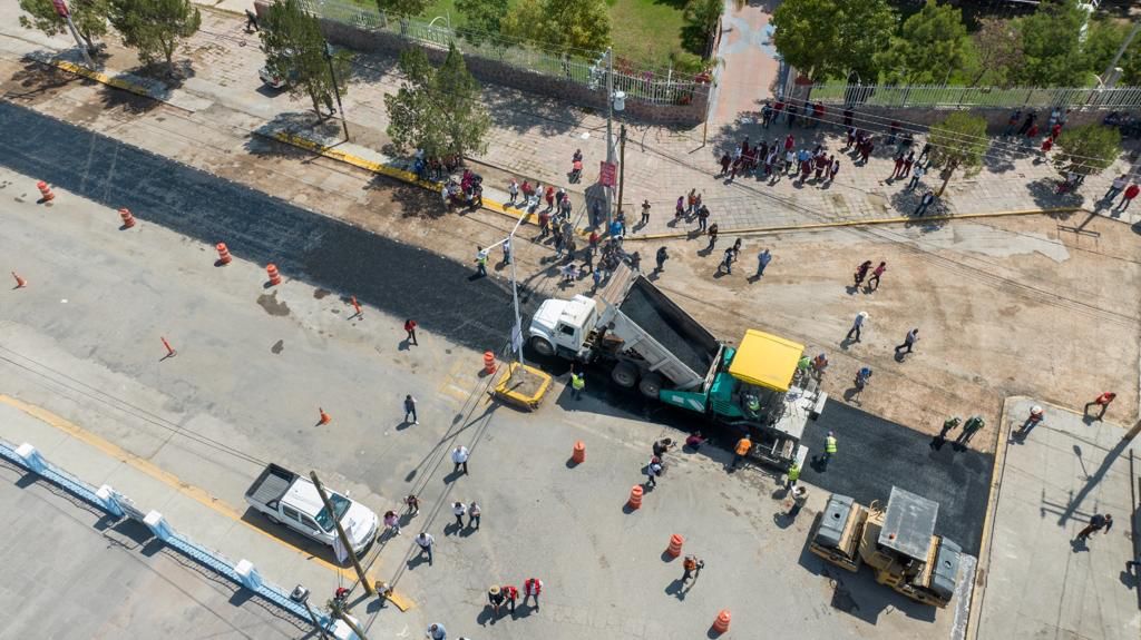 Esta semana, en la calle Papagayo, sigue el proceso de reparación de la red de drenaje en colaboración con Interapas; en la Delegación de La Pila continúa la construcción de la calle Santa María y un avance considerable en la rehabilitación de la calle de Acceso Principal de la Delegación, en los dos carriles, tanto de entrada como de salida. Asimismo, continúa la segunda etapa de rehabilitación de la calle Ponciano Arriaga al norte de la ciudad, con trabajos de reparación de la red de drenaje.