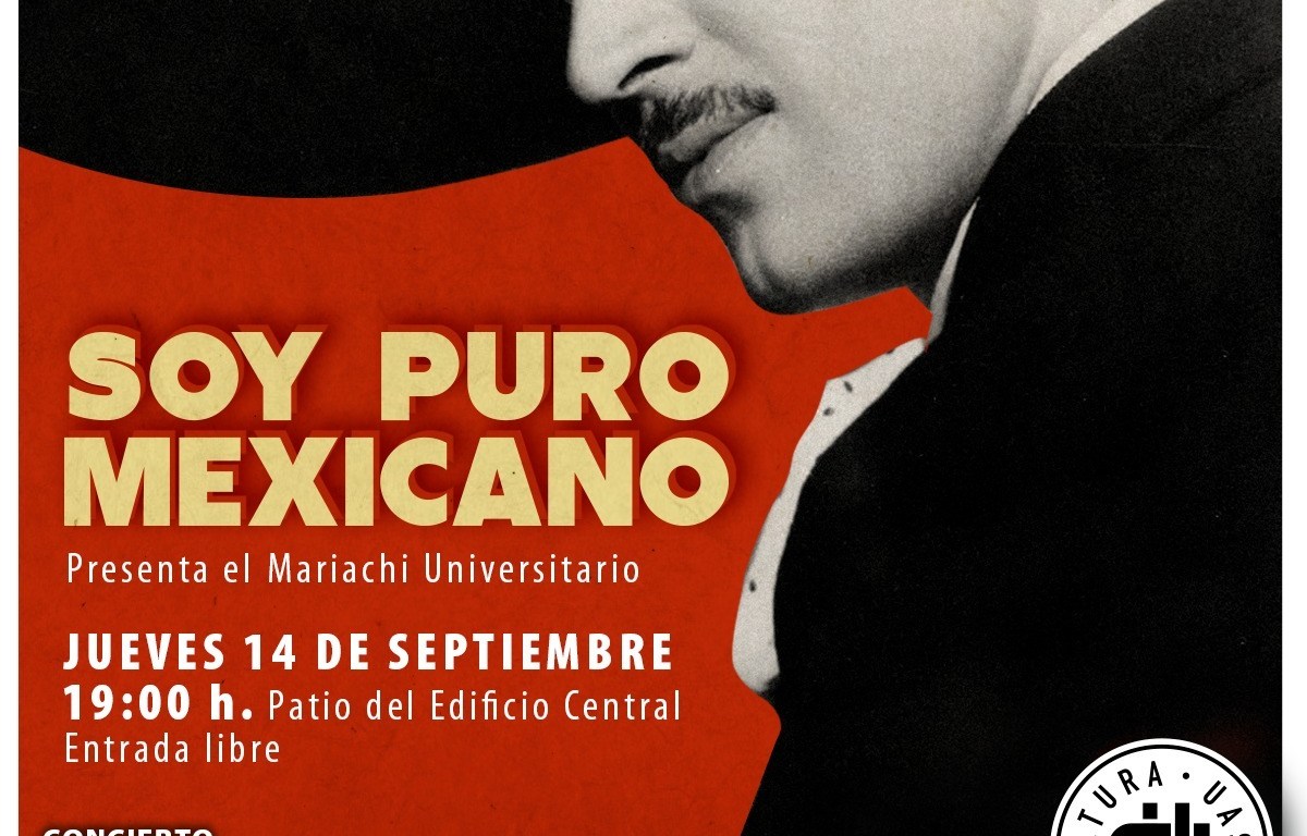 Con motivo de las fiestas patrias, la Universidad Autónoma de San Luis Potosí a través de la Secretaría de Cultura, invita a la comunidad universitaria y público en general, al concierto “Soy Puro Mexicano”, el cual estará a cargo del Mariachi Universitario. La cita es el próximo jueves 14 de septiembre de 2023, en el Patio del Edificio Central Universitario, en punto de las 19:00 horas, la entrada es completamente libre.