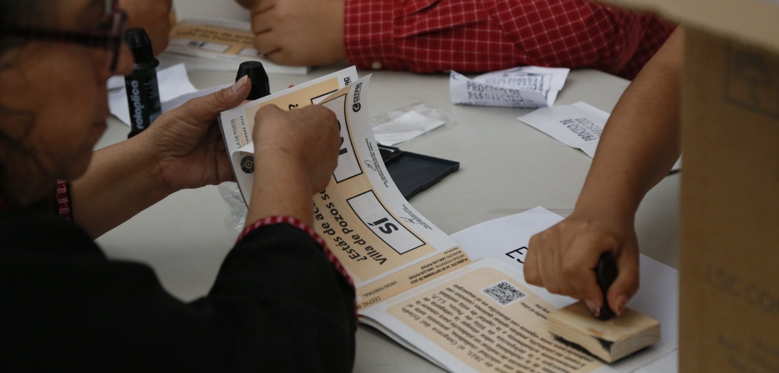 El Consejo Estatal Electoral y de Participación Ciudadana (CEEPAC) inició con el proceso de conteo, sellado y agrupamiento de las papeletas que serán utilizadas en la jornada del plebiscito para la conocer la opinión de la ciudadanía del municipio de San Luis Potosí sobre la municipalización de la delegación de Villa de Pozos, esto tras recibir las mencionadas papeletas, actas de jornada de plebiscito y de escrutinio y cómputo, hojas de incidentes, y las constancias de clausura de mesas receptoras de opinión.