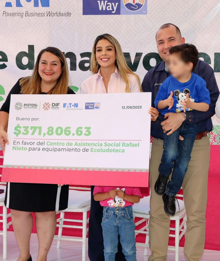 En apoyo al desarrollo integral de la niñez y juventud de los Centros de Asistencia Social, el Sistema Estatal para el Desarrollo Integral de la Familia (DIF), recibió de la empresa Eaton y el Fondo Unido México, un donativo que suma más de 740 mil pesos, para equipamiento de Eco Ludotecas en los Centros de Asistencia Social “Rafael Nieto” y “Margarita Maza de Juárez”.