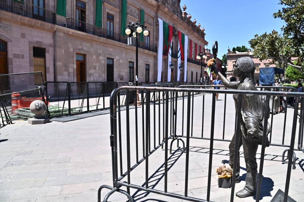 Comentó que, durante el 15 y 16 de septiembre, se espera que miles de potosinas y potosinos, así como turistas, asistan a esta emblemática plaza del Centro Histórico debido a las actividades que se tienen preparadas, por lo que durante las fiestas el memorial estará en resguardo y bajo vigilancia de la Secretaría de Seguridad y Protección Ciudadana del Estado (SSPCE), para que no sufra algún daño.