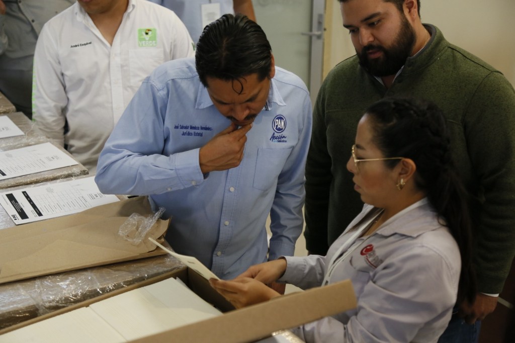 En presencia de los integrantes del Consejo General, se realizó el proceso de verificación mediante muestras aleatorias a cuatro paquetes de mesas receptoras de opinión de las que se extrajeron, para cotejar que la documentación, papeleta y actas cumplieran con las características y las medidas de seguridad aprobadas con anterioridad.