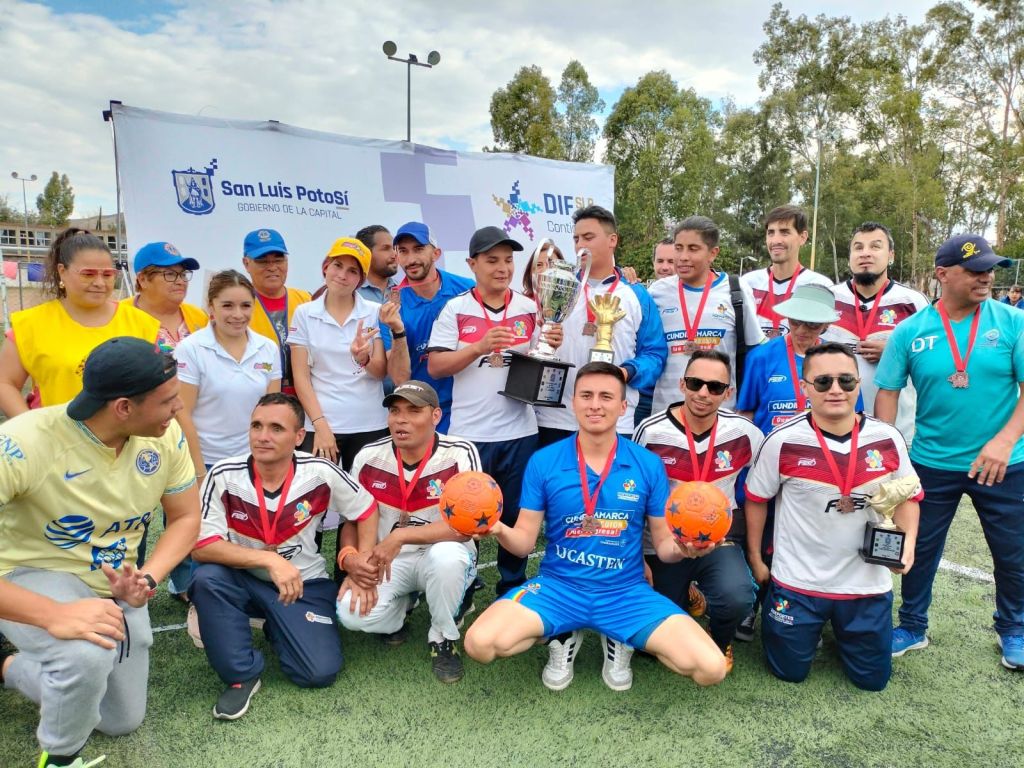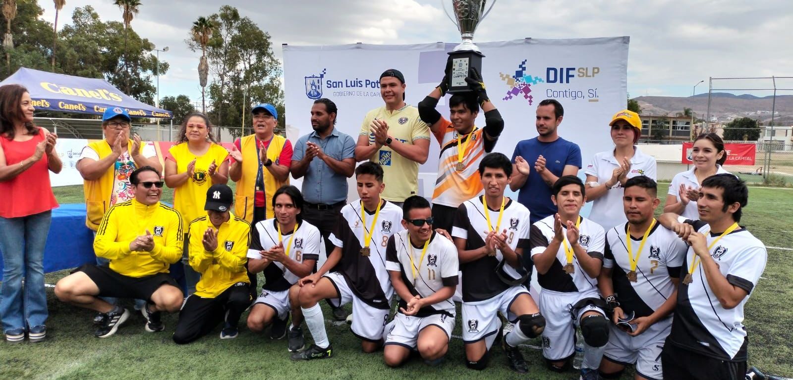 Luis Fernando Alonso Molina, Director de Deporte Municipal y Pablo Millán, integrante de la Coordinación de Inclusión Social para Personas con Discapacidad del DIF Municipal y jugador del equipo potosino Búhos FC; encabezaron la ceremonia de clausura en representación de la Presidenta del DIF Capitalino, Estela Arriaga, y el Alcalde Enrique Galindo.