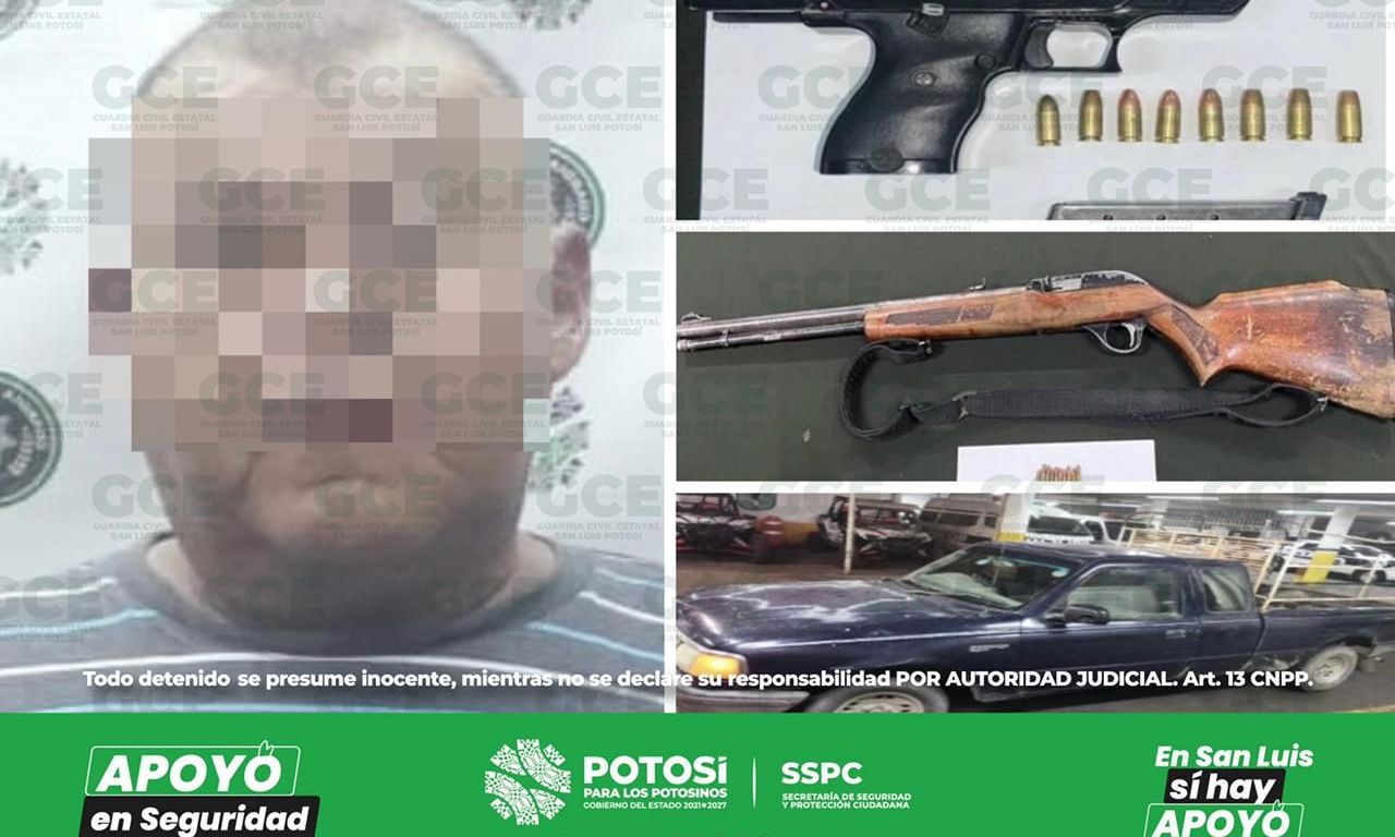 En resultado de las acciones de seguridad y vigilancia efectuadas por policías de la Guardia Civil Estatal (GCE) a fin de combatir hechos que puedan vulnerar la paz de las y los potosinos, un hombre fue detenido por el probable delito de portación de armas de fuego y cartuchos útiles; el detenido presumiblemente es parte de una red criminal generadora de violencia.