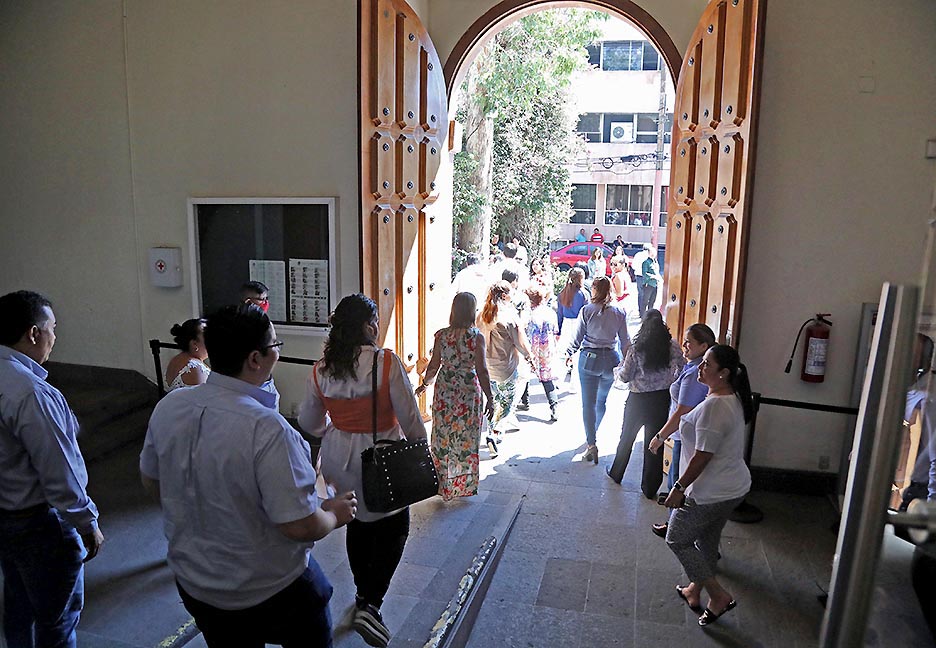 A las 11:00 horas sonaron silbatos y la alarma de un altavoz por parte de personal de la Dirección Estatal de Protección Civil y de Servicios Internos, por lo que personal administrativo; y, diputadas y diputados, desalojaron en dos minutos 30 segundos el inmueble, en donde se canceló el uso del elevador.