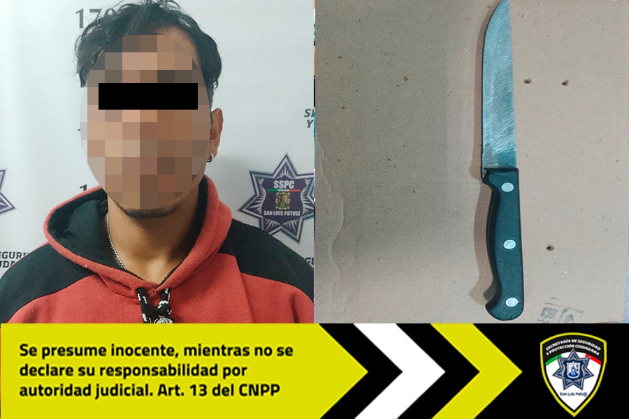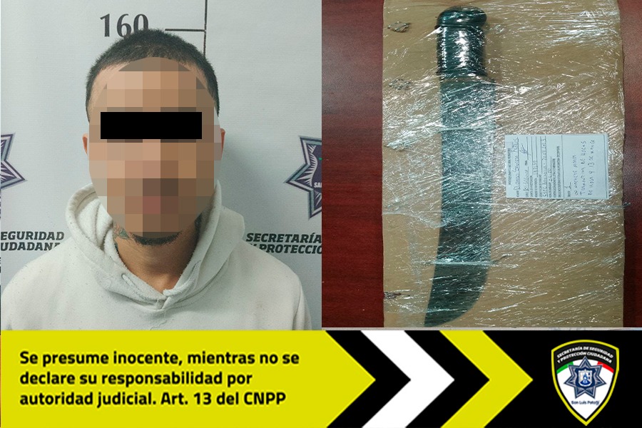 Derivado de la oportuna intervención de agentes municipales de la Secretaría de Seguridad y Protección Ciudadana (SSPC), se llevó a cabo, en diferentes acciones, la detención de dos hombres que fueron señalados de portación de arma prohibida, uno de los detenidos aparentemente amenazó a su pareja e hijastra con un cuchillo, el otro detenido fue detectado en la delegación de Villa de Pozos portando un machete.