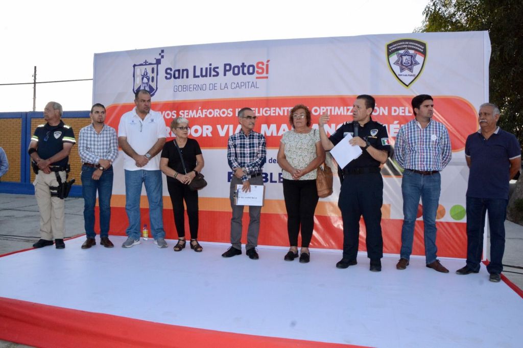 El sexto corredor vial permitirá una mejor movilidad y conexión desde la zona de El Saucito a Balcones del Valle, con una reducción importante en los tiempos de traslado al contar con nuevos semáforos inteligentes, así lo anunció el Secretario de Seguridad y Protección Ciudadana (SSPC), Juan Antonio Villa Gutiérrez, durante el encendido de semáforos y activación del corredor vial Mariano Jiménez.
