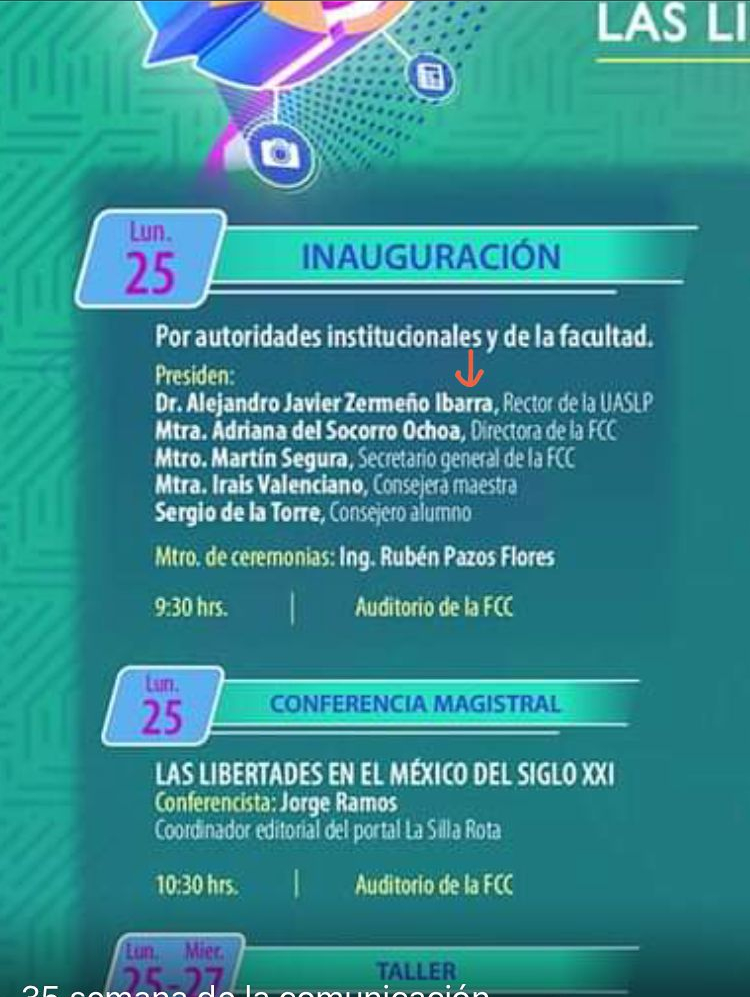 Del 25 al 29 de septiembre, la Facultad de Ciencias de la Comunicación (FCC) de la Universidad Autónoma de San Luis Potosí (UASLP) llevará a cabo su semana académica. El programa del evento comprende conferencias magistrales, conferencias virtuales, talleres, concursos, actividades deportivas, conversatorio y proyección de película.
