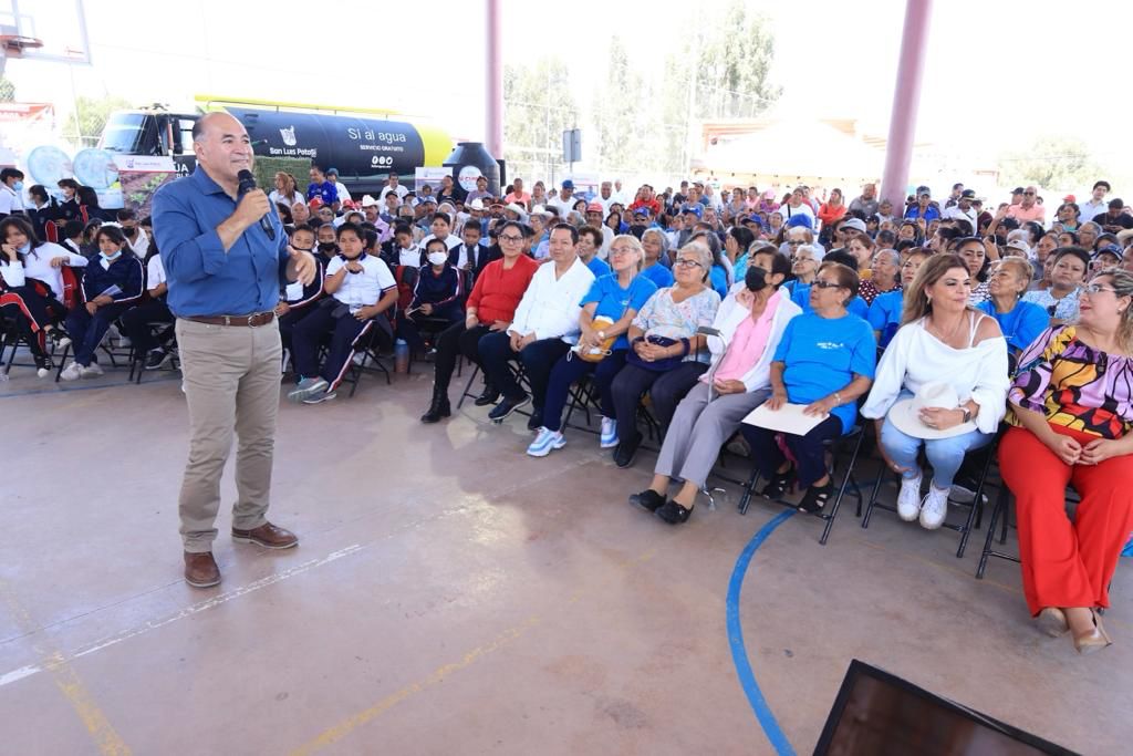En el Centro Deportivo “Centenario del Ejército Mexicano” y ante cientos de personas, el Alcalde Enrique Galindo insistió que “nuestros programas llevan esa misión de beneficiar a la gente que necesita nutrirse, de desarrollarse de manera integral, para sacar a niñas y niños de la pobreza alimentaria, mediante un Gobierno que otorgue diversos apoyos, no en función de un voto, sino para resolver problemas de años que han arrastrado cientos de potosinas y potosinos”. Destacó las atenciones dadas a través de la Ruta de la Salud, del Domingo de Pilas y demás acciones que se realizan junto a la ciudadanía, para llevar desarrollo social a las colonias de la Capital.