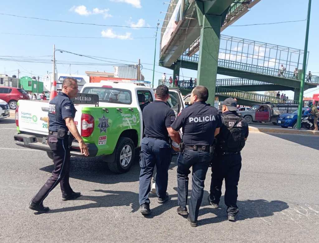 Los agentes viales de Soledad atendieron el llamado de un grupo de personas, quienes se encontraban en el lugar donde un menor de edad intentaba aventarse con la intención de hacerse daño, por lo que brindaron apoyo para lograr bajarlo del lugar.