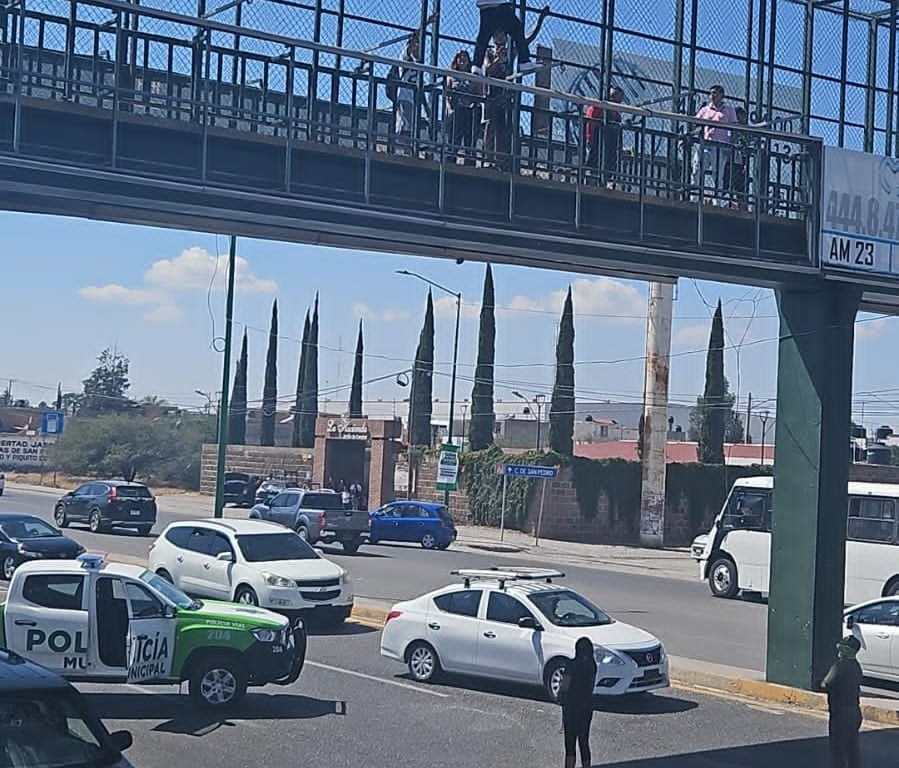 En una atención y respuesta inmediata, oficiales de la Dirección de Tránsito de Soledad de Graciano Sánchez rescataron un joven que intentó arrojarse desde lo alto del puente peatonal, el cual cruza Carretera Rioverde a la altura de la colonia San Rafael.