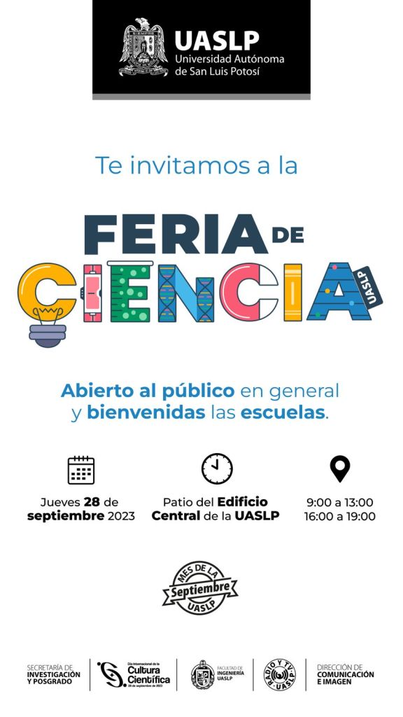 El próximo 28 de septiembre, se celebra el Día Internacional de la Cultura Científica (DICC) y la Universidad Autónoma de San Luis Potosí, llevará a cabo la Feria de Ciencia con diversas actividades de ciencia recreativa dirigidas a estudiantes de bachillerato.