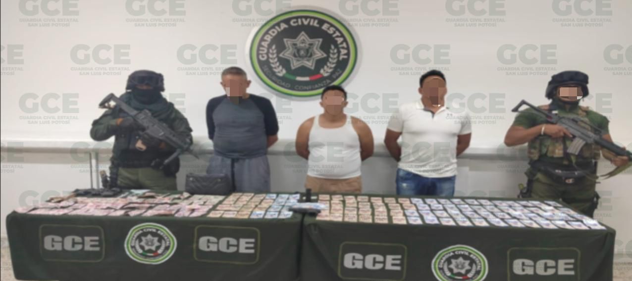 Luego del dispositivo implementado, los presuntos delincuentes fueron ubicados en el Periférico Oriente y la avenida San Miguel, en la colonia La Virgen, en el municipio de Soledad de Graciano Sánchez, donde fueron detenidos Jesús y/o Armando “N” de 37 años, Marco y/o Antonio “N” de 34 años y Raydel “N” de 40 años de edad.