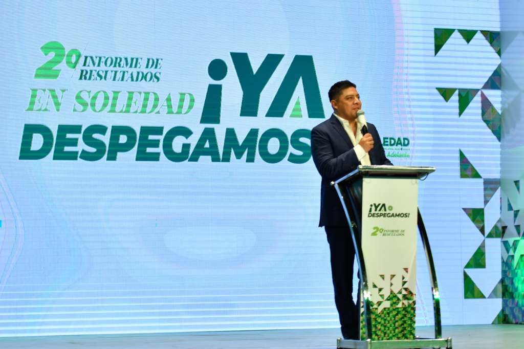 Al asistir al Segundo Informe de Actividades de la alcaldesa Leonor Noyola Cervantes, el Jefe del Ejecutivo Estatal, puntualizó que se trabaja para llevar obras de infraestructura y sociales para mejorar la calidad de vida de las familias que habita en Soledad, que al igual que los otros municipios ya despegaron hacia la prosperidad gracias al apoyo del Estado.