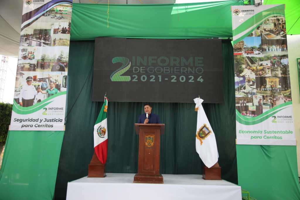 Por primera ocasión un Gobernador acude al informe de este municipio; aquí el Mandatario estatal reafirmó todo su apoyo para la transformación de Cerritos y del Estado