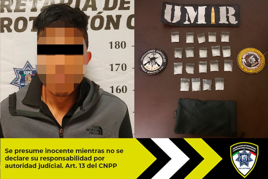 Oficiales de la Secretaría de Seguridad y Protección Ciudadana (SSPC) de la Capital llevaron a cabo el aseguramiento de una persona de sexo masculino al que le fueron encontraron 19 bolsas que contenían polvo blanco granulado con las características similares a la droga conocida como cristal. El aseguramiento se realizó durante patrullajes preventivos en el cuadrante sur de la ciudad.