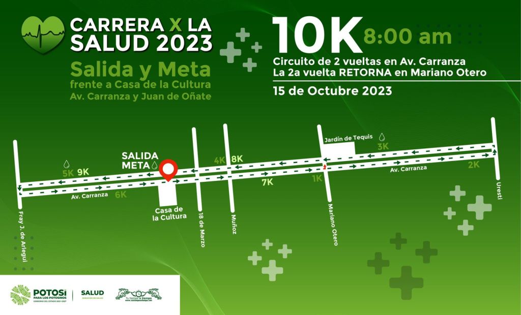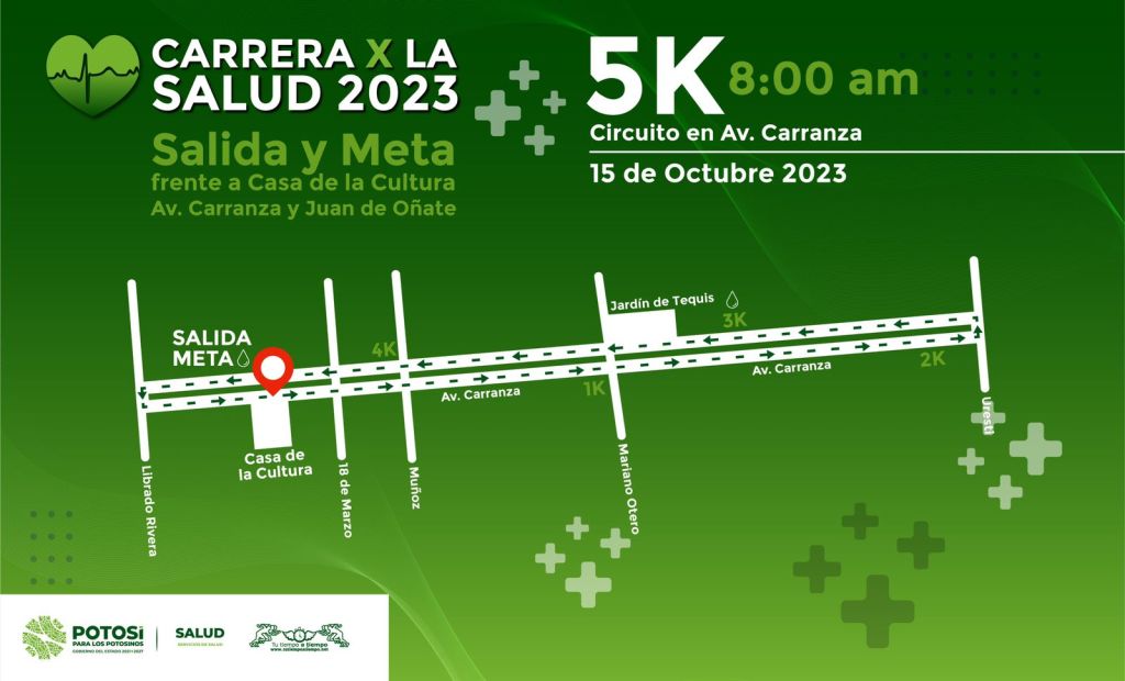 La inscripción es gratuita y la salida está programada a las 8:00 horas frente a la Casa de la Cultura en la Av. Venustiano Carranza, la meta será en el mismo lugar de salida; para participar puede hacerlo vía electrónica en el link: https://tutiempoatiempo.net/carrera-por-la-salud2023.