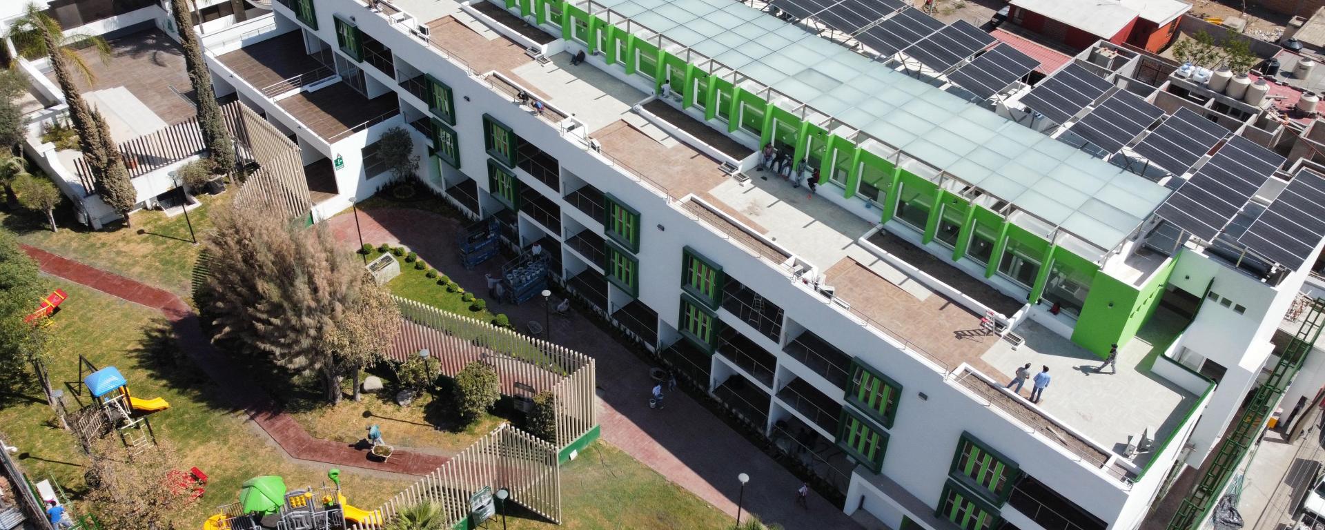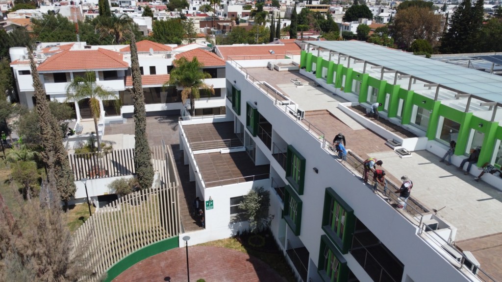 Agregó que la edificación se realiza en una superficie de mil 873 metros cuadrados para el servicio del cuidado de menores de edad y 5 mil 488 metros cuadrados para personas adultas mayores, que incluye la construcción de un nuevo edificio en la zona que antes se utilizaba para canchas de tenis y que ahora será habilitado con habitaciones, consultorios, comedores, baños, salas de estar y espacios con acceso universal.