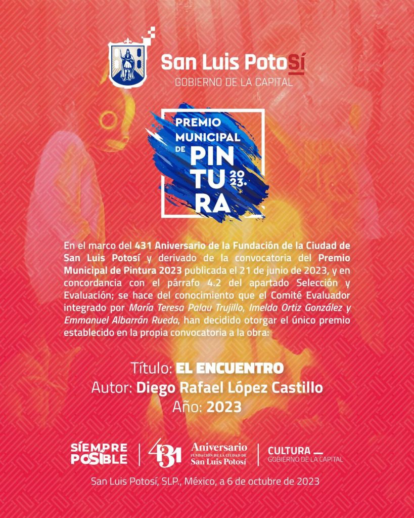Gran respuesta tuvo la convocatoria al Premio Municipal de Pintura 2023, realizada por el Honorable Ayuntamiento de San Luis Potosí a través de la Dirección de Cultura Municipal, en coordinación con la Comisión de Cultura, Recreación, Deporte y Juventud.