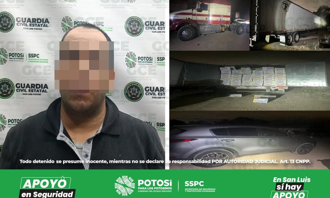 El detenido fue puesto a disposición de la Fiscalía General del Estado junto con la unidad y mercancía aseguradas.