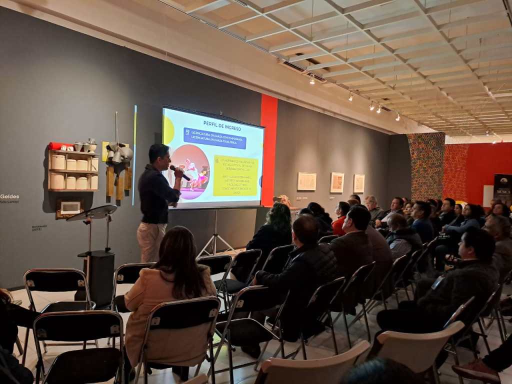 En el Museo de Arte Contemporáneo, representantes de las escuelas de Artes Plásticas, Danza, Música y Teatro expusieron a las y los orientadores, la oferta académica, curricular y perfiles de ingreso y egreso de cada una las licenciaturas, con el fin de que, desde la etapa del bachillerato, se logre identificar a las y los estudiantes con aptitudes artísticas que tengan interés en cursar alguna de estas carreras profesionales.