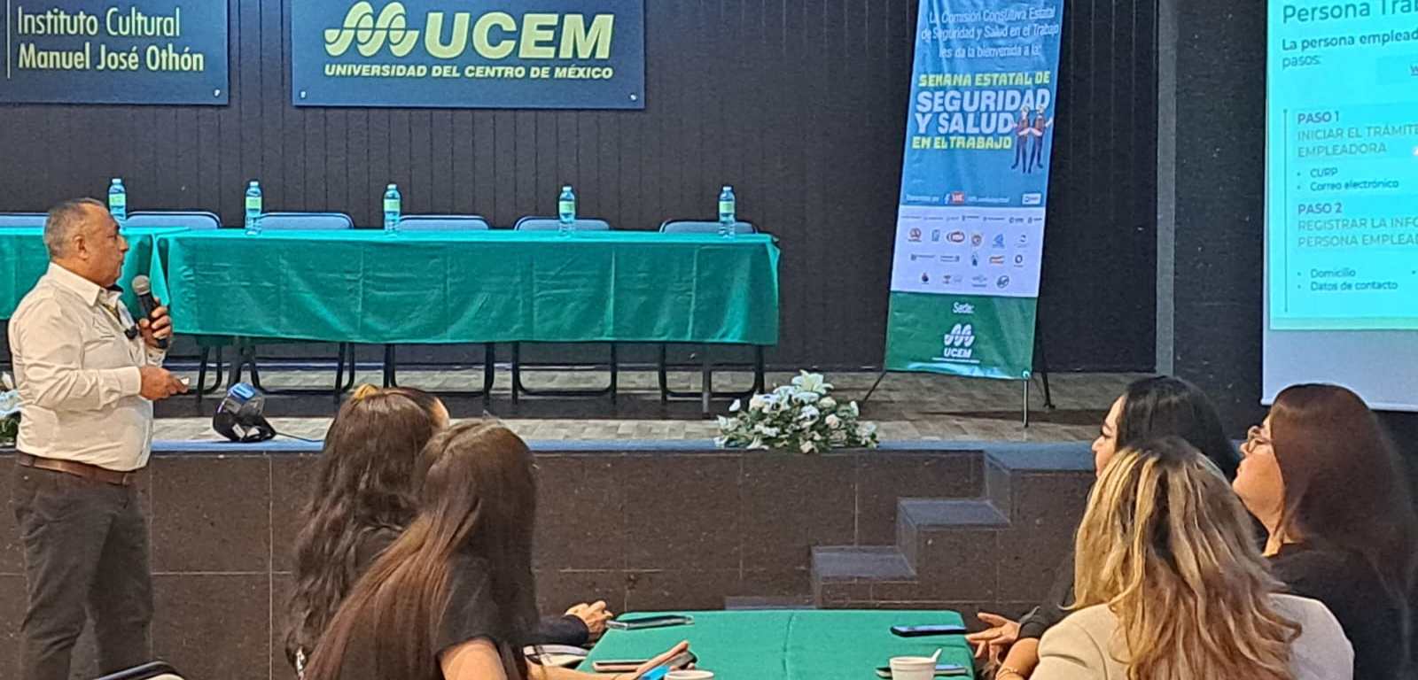 El titular de la Representación del Instituto Mexicano del Seguro Social (IMSS) en San Luis Potosí, doctor Leonardo Francisco Muñoz Pérez, y directivos la Jefatura de Afiliación y Cobranza, participaron en la conferencia denominada Seguridad Social para las Personas Trabajadoras del Hogar, como parte de las actividades de la Semana Estatal de Seguridad y Salud en el Trabajo, convocada por la Secretaría del Trabajo y Previsión Social del Gobierno del Estado, del 2 al 6 de octubre.