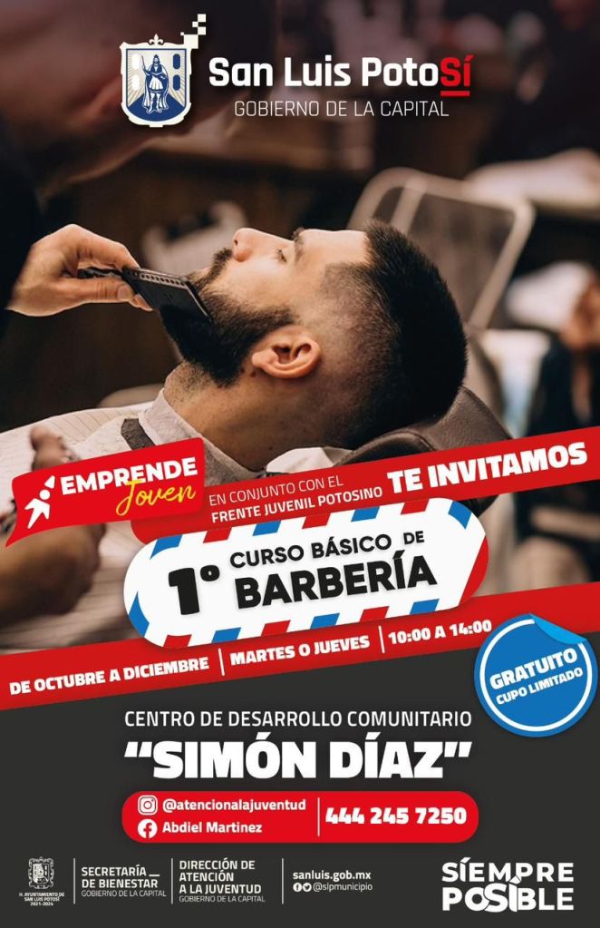 Desde la Dirección de Atención a la Juventud se hace una invitación a las interesadas y los interesados en adquirir conocimientos básicos de barbería a que acudan a las instalaciones del Centro de Desarrollo Comunitario, donde se encuentra la dependencia municipal o se comunique a los teléfonos 4442457250 con Guillermo Negrete o 4441887571 con Guillermo Rivera Morales.