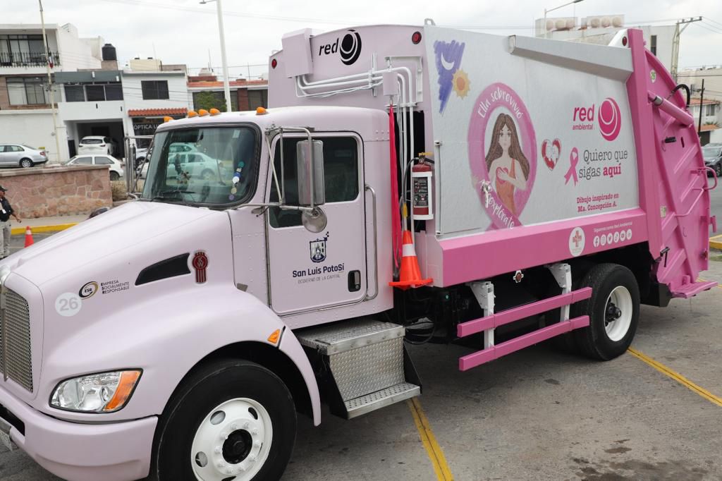 El titular de Gestión Ecológica, Maximino Jasso Padrón, recordó que el camión recolector específicamente rotulado para esta campaña, recorrerá las más de 95 rutas que llegan a prácticamente toda la mancha urbana, “lo que nos permitirá visibilizar temas tan importantes como lo es la autoexploración para detectar a tiempo el cáncer de mama”.