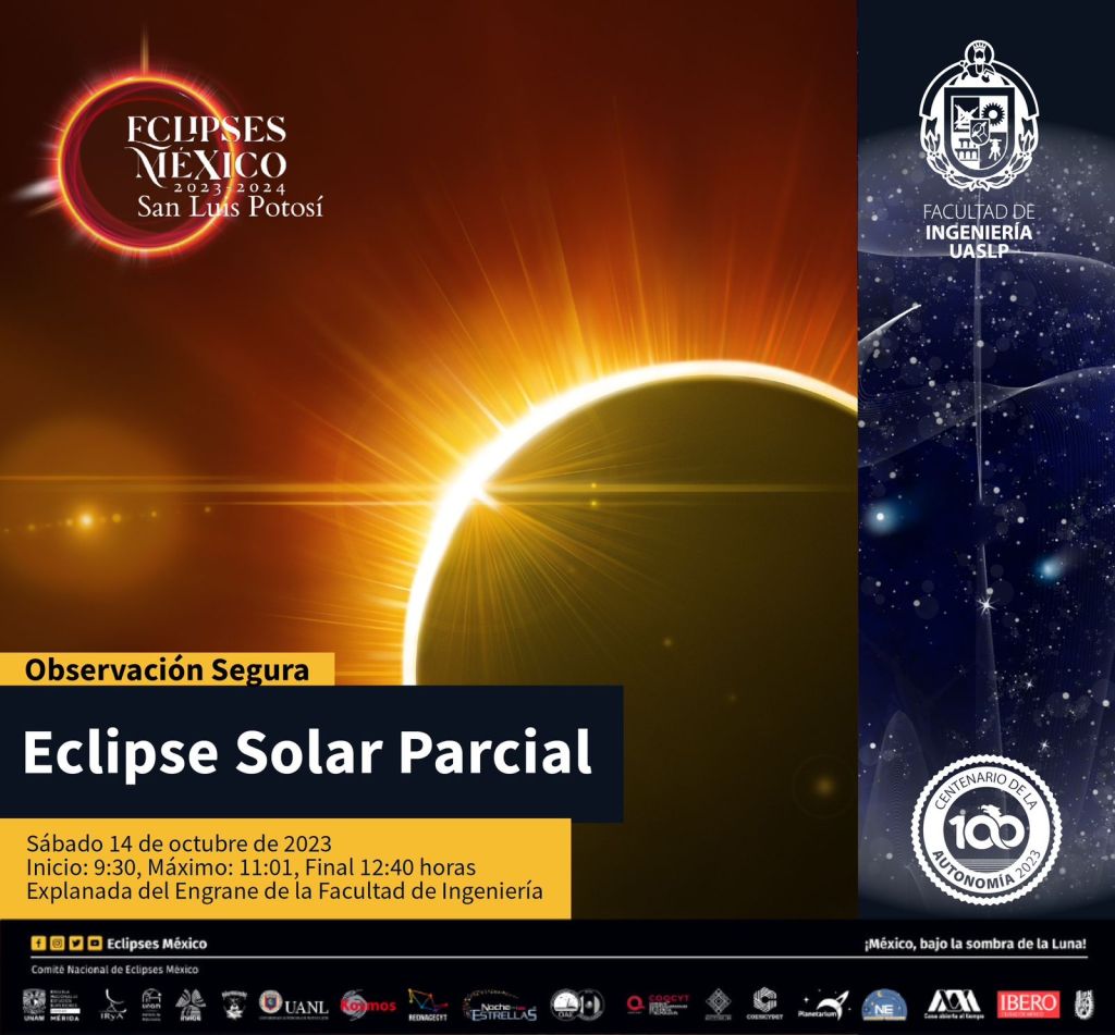 La Facultad de Ingeniería y el Instituto de Física son las entidades académicas de la Universidad Autónoma de San Luis Potosí, que se localizan en la capital potosina, que abrirán sus puertas y desplegarán este sábado 14 de octubre a partir de las 9:00 de la mañana todo un equipo de personas para realizar la observación segura del eclipse solar.