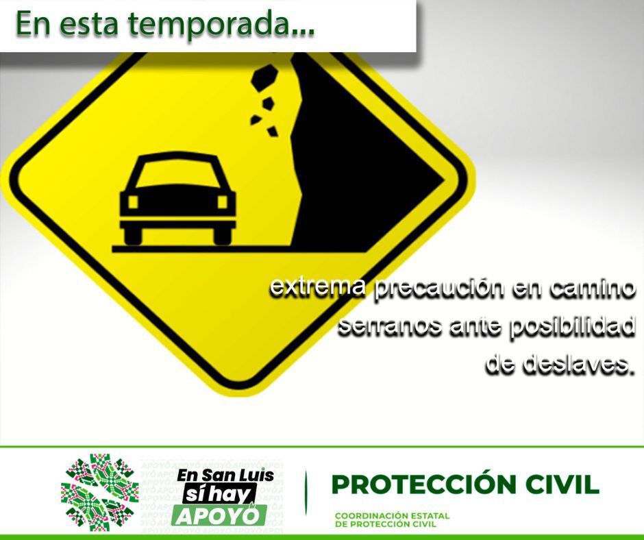 Informó que este domingo, se atendió un desprendimiento de rocas en la súper carretera Valles-Rioverde en el tramo de Rayón por lo que se pide a los automovilistas tomar sus precauciones al manejar por las diferentes carreteras estatales y federales, ya que la humedad puede generar este tipo de situaciones.